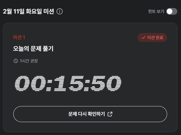 | [99ํด๋ฝ] 18์ผ์ฐจ ๋ฌธ์ : ํฌ๋ฆฌ์ค๋ง์ค ์ ๋ฌผ (0) | 2025.02.12 |