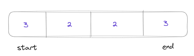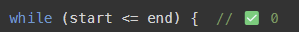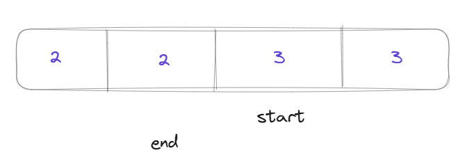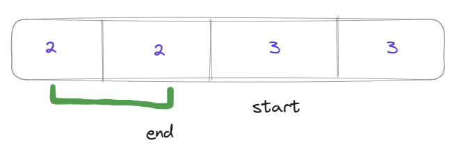while๋ฌธ์ด ๋ค ๋๋ฌ์ ๋ start์ end์ ์์น๋ ๋ค์๊ณผ ๊ฐ๋ค.