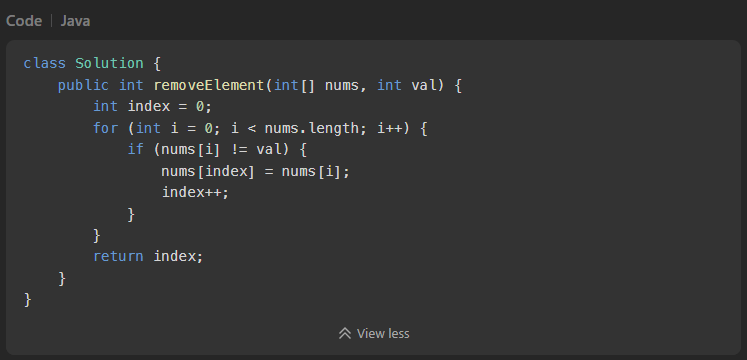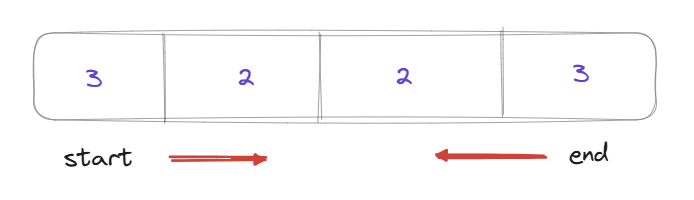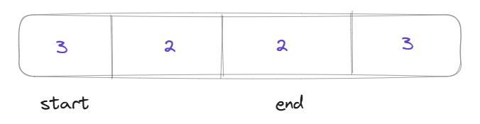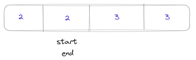์๋ฅผ ๋ค์ด, nums = [3, 2, 2, 3], val = 3์ด input์ผ๋ก ์ฃผ์ด์ง ๊ฒฝ์ฐ start์ end์ ์์น๋ ๊ฐ๊ฐ ์์๊ณผ ๋์ ๊ฐ๋ฅดํจ๋ค.