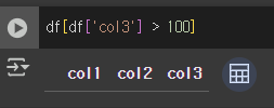 2๋ฒ์ ์คํํ์ ๋๋ col3์ 100 ์ด๊ณผ์ธ ๊ฐ์ด ์์ด์ ์๋ฌด๊ฒ๋ ์กฐํ๋์ง ์๋๋ค.