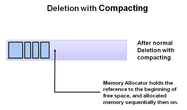 3. Deletion with Compacting : Normal Deletion์์ ์ฑ๋ฅ์ ์ข ๋ ๊ฐ์ ํ ๊ฒ์ผ๋ก ์์ง ์ด์์๋ ์๋ ๊ฐ์ฒด๋ฅผ ํ ๊ณณ์ผ๋ก(๋น ๊ณต๊ฐ์ด ์๋๋ก) ๋ชจ์๋ค. ์ด ๊ฒฝ์ฐ, ์๋ก์ด ๋ฉ๋ชจ๋ฆฌ๋ฅผ ํ ๋นํ๋ ๊ฒ์ด ๋ ธ๋ฉ๋ณด๋ค ํจ์ฌ ๋ ์ฝ๊ณ ๋น ๋ฅด๋ค.